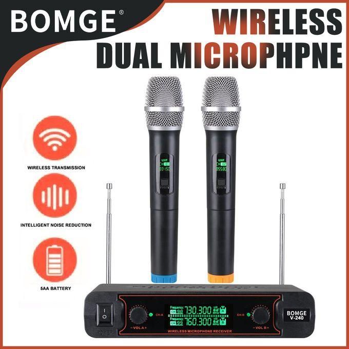 DUAL CHANNEL: This black wireless microphone system has a dual frequency channel and a wide audio response range with low distortion so you can enjoy wireless singing with karaoke music and mobility for energetic performance on stage. STABLE SIGNAL and CLEAR SOUND: This professional handheld wireless microphone set has a channel frequency range of 174~216MHz and high signal-to-noise ratio performance to capture high-quality audio. Ideal for professional engagement, conference INDEPENDENT MICROPHONE VOLUME CONTROL: Each dynamic or lav microphone features its own volume control so you can balance vocals as desired for a karaoke experience that both kids and adults will enjoy. Perfect for PA, karaoke, DJ party. CONVENIENT POWER SWITCH: Both the receiver and microphone have an on/off switch and the receiver has an LED signal status indicator light and an independent dual antenna. Connect your unit to your mixer, amplifier or speaker with a 1/4″ mono cable WHAT’S IN THE BOX: Package includes a receiver, 2 wireless handheld dynamic transmitter microphones, 4 AA batteries, 1 audio cable and 1 manual in Spanish. The device can be used outdoors and indoors such as a school classroom, church, or at home for personal use.